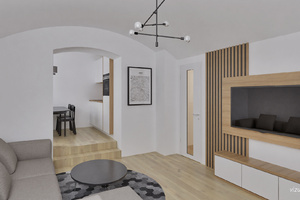 The new units A1.2, A02.101, A02.102 and A01.103 were built as part of a larger reconstruction of the building. They offer completely new water, heating and electricity distribution and their own heating source - gas or electric boiler depending on the type of unit. The standard includes new interior doors, vinyl floors in wood decor, modern tiles, a kitchen with appliances and a fully equipped bathroom.