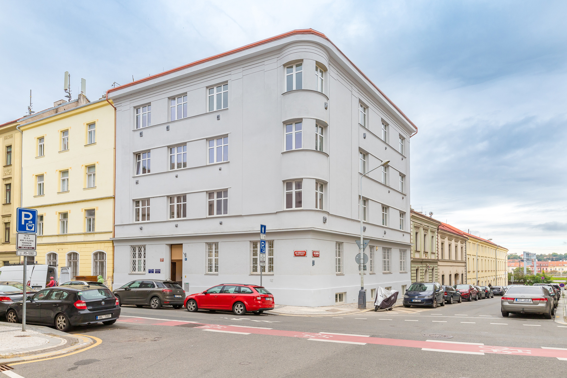 The house is located at Ke Koulce 1704/6 street, near the Křížová tram stop, from which you can walk to the Anděl metro station or Smíchovské nádraží in 5 minutes.