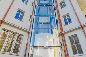 The entire apartment building underwent extensive renovation, which included a new chip access system, audio phones, new entrance doors, mailboxes, painting, lighting, and the construction of cellar cubicles. The house has a new glass elevator attached to the facade of the house.