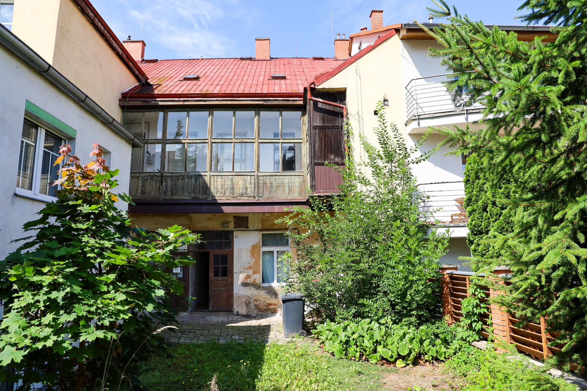 V řadovém cihlovém domě se třemi nadzemními podlažími a společnou zahradou jsme úspěšně realizovali prodej dvou bytových jednotek v druhém a třetím patře.