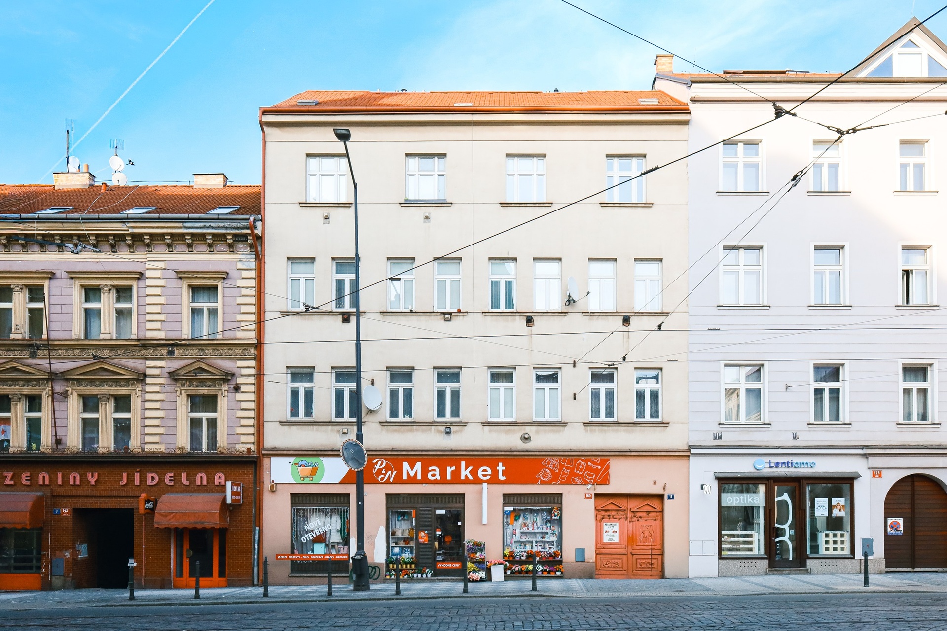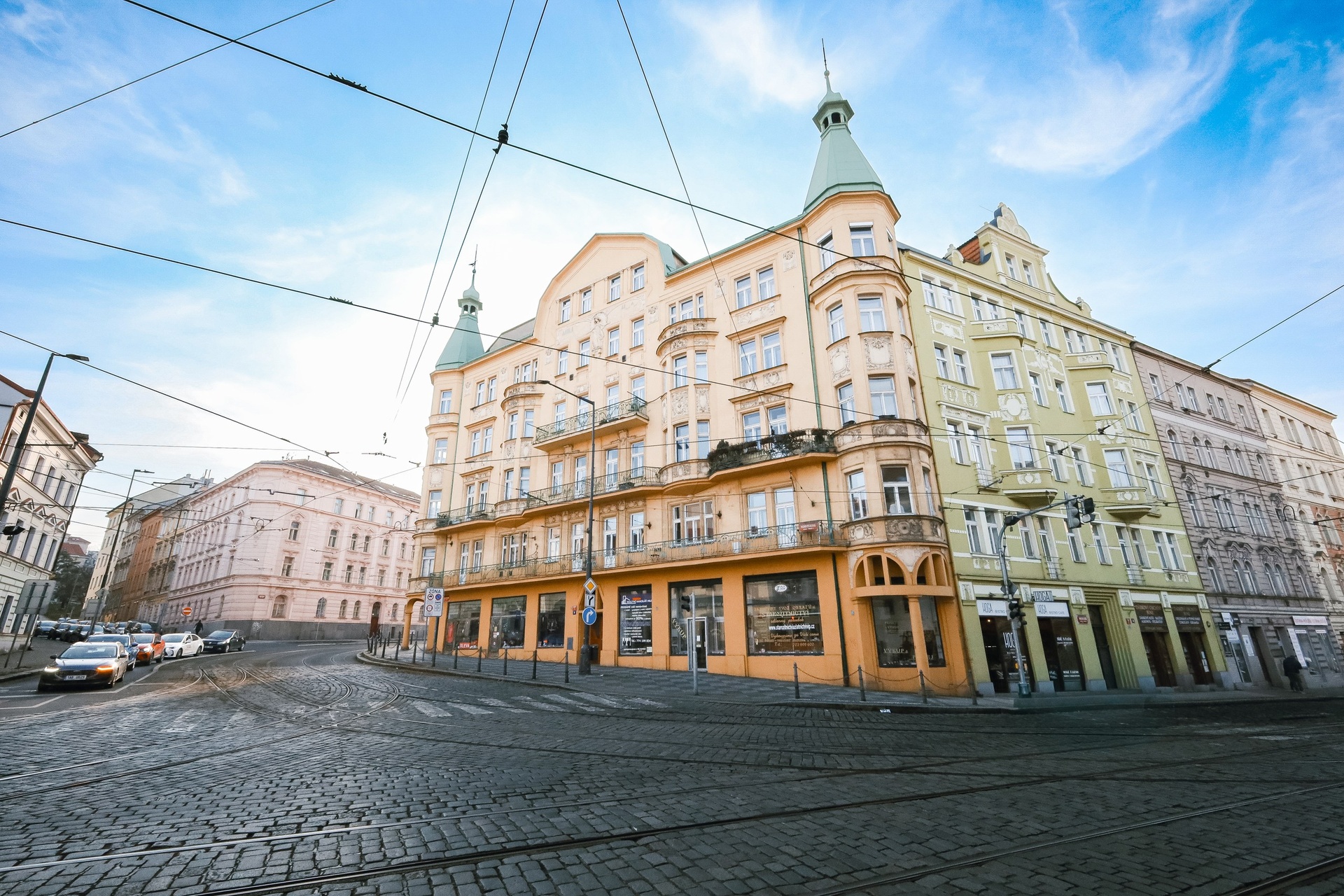 Součástí domu jsou také komerční prostory. Jeden z nich se nachází v přízemí s přímou orientací do ulice, což zajišťuje dobrou viditelnost i dostupnost. Další prostor slouží jako skladové zázemí ve vnitrobloku a třetí je situován v suterénu domu.